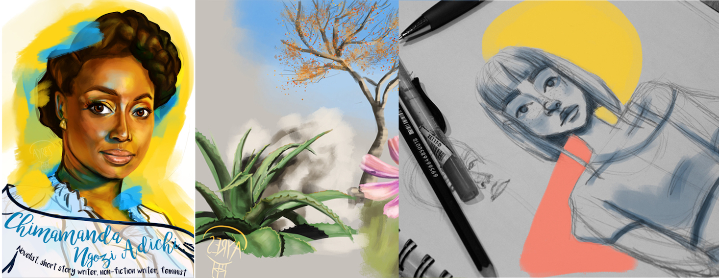 Drawing every day or really as often as possible is another must. Take your sketchbook everywhere and commit to actually using it then and there. Tell your story through your sketchbook and art. Don't be afraid of the messy and ugly' parts - it's all a part of your journey and your story!